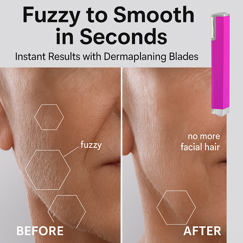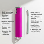 This professional dermaplaning razor simultaneously removes unwanted peach fuzz (fine facial hair) and exfoliates dead skin cells in one gentle stroke, revealing smoother, brighter, more radiant skin instantly.